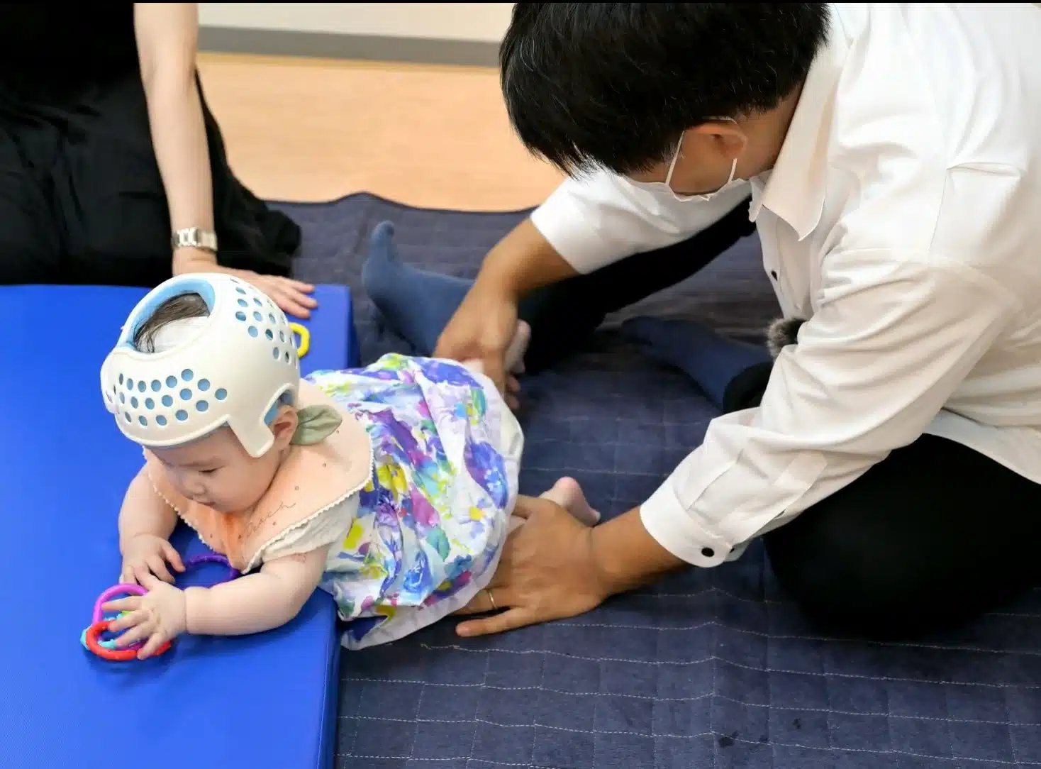 グラグラするなか頭の位置を傾けることは赤ちゃんにとってとても怖い経験になることでしょう。座りいざり(シャッフリング、シャフリングベイビー)しかできない赤ちゃんになる小さなつまずきの原因の一つになるとたなかは考えています。