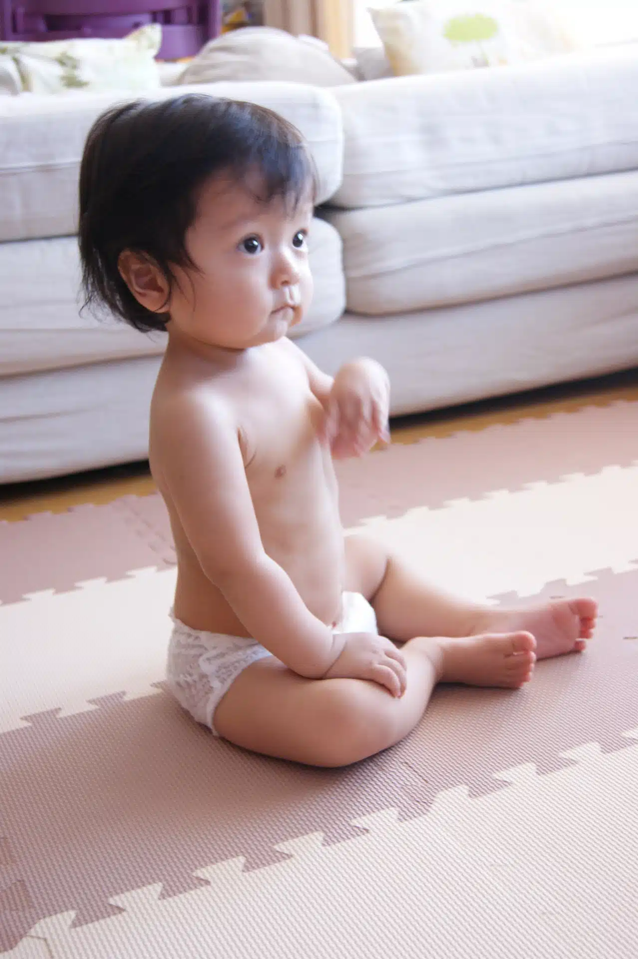 一方元々股関節の動きが内向きな赤ちゃん(大人も)はこの姿勢になることが苦手だったりします。また、この姿勢になるにも、この姿勢を止めるにも複雑な身体の動きが必要です。実際輪座りから直接立つことは非常に難しいはずです。