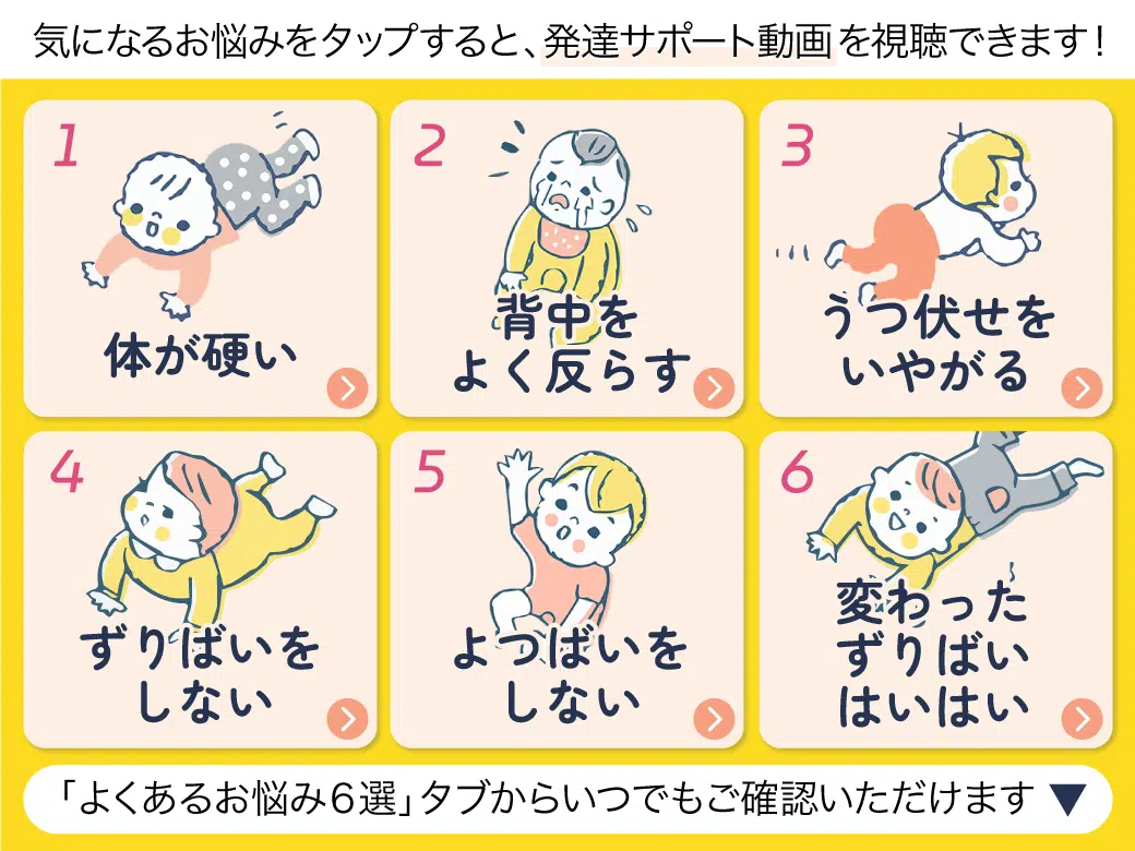 2,お客様からのよくある6つの相談への対策動画「赤ちゃんの体・運動発達サポートmini」をプレゼント